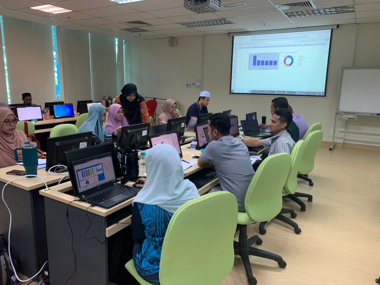 Seramai 37 orang peserta yang terdiri daripada staf UMPSA telah menyertai program ini dengan jayanya. Antara pengisian kursus ini adalah dimana para peserta dibimbing untuk membuat "data acquisition, modelling and visualization" menggunakan perisian Power BI. Peserta kursus juga diajarkan asas DAX. Pada akhir sesi latihan, peserta diberikan tugasan untuk dilaksanakan bagi menguji kemahiran hands-on peserta dalam Power BI.